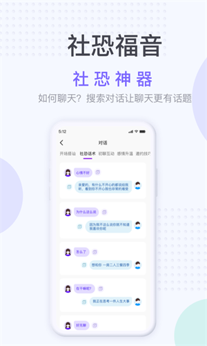 社恐神器app是一个专为广大社科爱好者设计的社交应用,通过丰富的模拟关怀、有趣的话题以及各种有意思的小游戏来吸引你的注意力,让你在社交恐惧症下快速逃离。