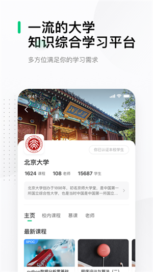中国大学生都在用的免费在线课程App。在这里,你可以看到来自985顶尖院校的精品课程,从基础到进阶,为你呈现优质的内容;