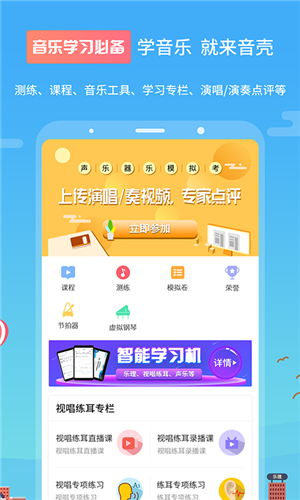 音壳音乐学院免费版还支持乐理练习、视唱练耳等功能,可以帮助用户快速进行乐器学习和提高自己的音乐素养。软件提供多种不同的模式来让学生更加轻松的掌握知识点并通过不断进步提升自己的水平。