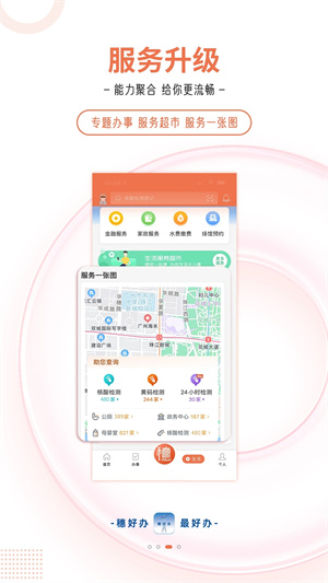 可实现水费、电煤气费一键缴交或挂号预约、社保卡线上充值、水电气费用自助缴款;