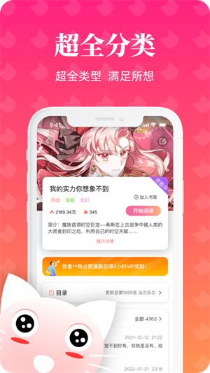 9、【分类齐全】:懒宠漫画APP内置丰富的分类标签体系,无论是热门的日漫、国番还是经典的作品,都能在这里找到心仪的内容。