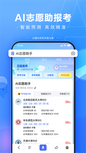 AI志愿助手是百度推出的一款高考智能填报工具,为广大考生提供最权威、最新、最准确的高考信息查询服务。这款软件提供了最新的高考政策和考试成绩报告功能,让考生了解考试动态与相关情况,做出明智的决策。