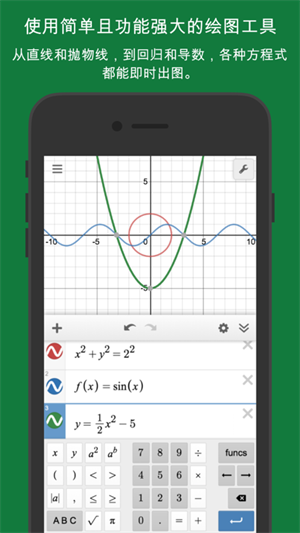 除了基础计算之外,该应用还有其他高级功能,例如绘制函数、函数曲线、对数函数等。这些功能旨在为他们提供一个全面且个性化的计算环境。