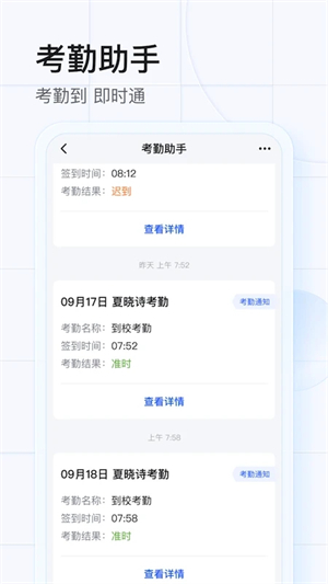 4【消息通知】学校重要通知系统自动推送至学生手机中,确保不会错过任何重要信息;同时支持多渠道公告展示,如微信、钉钉、网站、APP客户端......各类新媒体第一时间收到最新的通知。