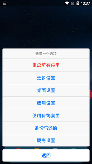 3、点击左下角的设置按钮可调整分辨率、显示位置、开启自动加载下一组app、切换系统版本等等参数内容以及隐藏游戏/应用等选项卡;