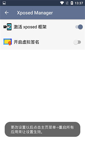 4、然后回到主界面中就可以直接在手机上安装xposed了;