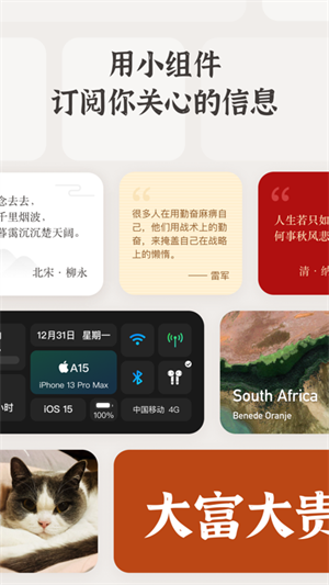 -添加你喜欢的小组件到你的主页,点击即可显示最近更新的组件列表,不论是照片还是文字,只需点击即可实现。