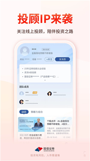 通过先进的大数据分析系统,该软件能够自动匹配符合投资者需求的股票线索,并结合市场趋势进行预测和推荐,助力投资者更好地选择最优的投顾组合。