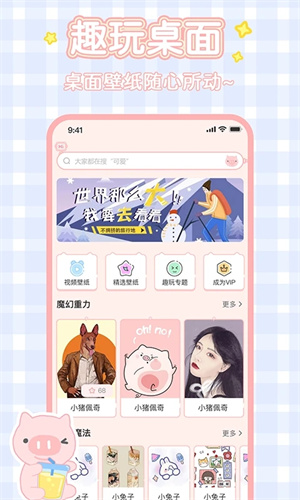 趣玩桌面壁纸软件是一个非常炫酷的手机壁纸应用,提供丰富的壁纸资源供用户选择。无论是动态桌面的壁纸还是高清的锁屏背景图片,都能在这里找到满意的选择。这款app涵盖了各种热门流行的高清壁纸和头像内容,满足不同用户的喜好与需求。无论你是喜欢风景、明星、动画还是其他主题风格,这里都有适合你的精选分类!