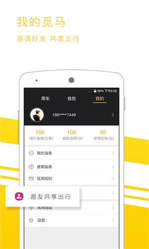 “觅”是为广大客户提供更快捷、便捷、安全的出行解决方案,通过手机APP一键下单,即可享受“觅”、“骑”,同时支持在线支付和微信提现功能。