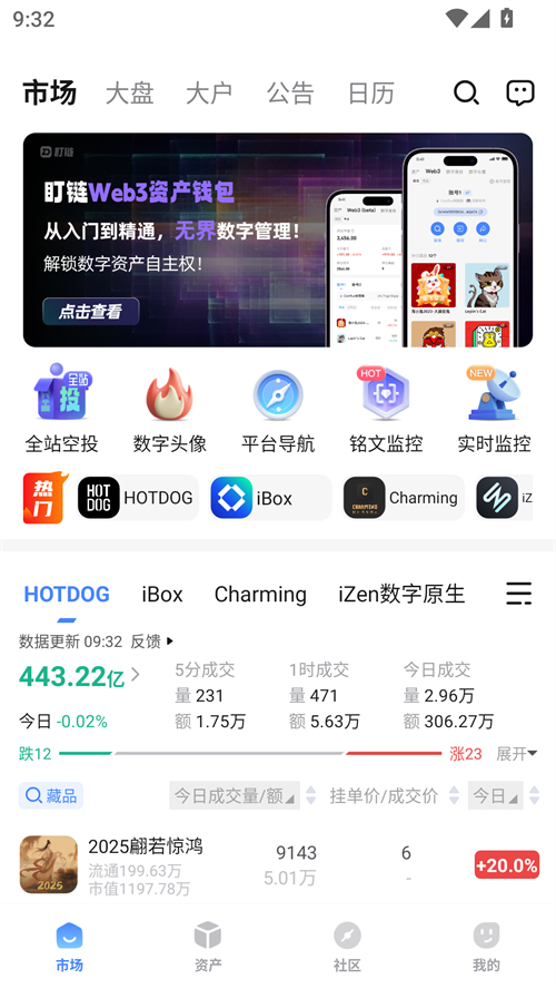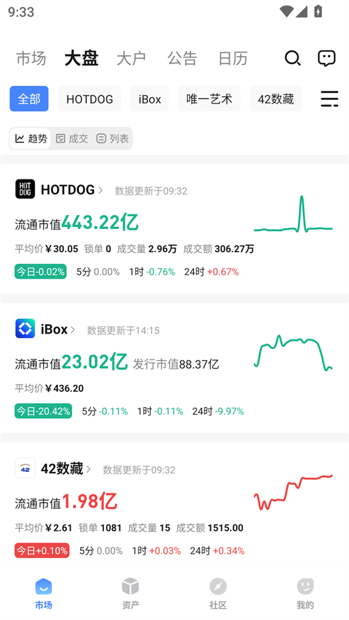 盯链官方免费版为数字藏品爱好者而打造的实时行情分析软件,用户可以在该软件上浏览最新的比特币等数字货币价格趋势。这不仅提供了丰富的数据信息和交易策略来帮助您进行市场分析与决策,还能在全球范围内轻松获取市场动态、交易机会以及盈利机会。
