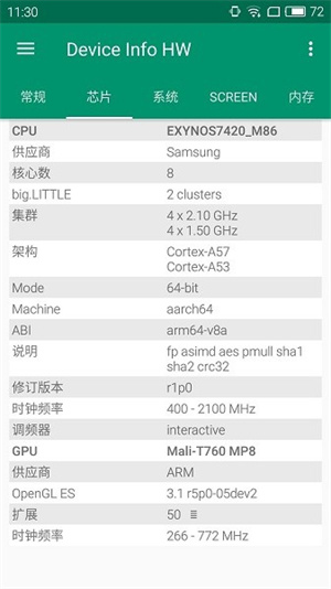 Info HW最新版是一款能够检测Android设备当中的硬件以及软件信息的应用程序 cpu硬件信息器软件是一款手机硬件的信息查看工具,能够帮助用户快速了解当前的CPU型号和CPU运行状态等情况。通过这款app我们可以轻松地进行硬件数据检测、电池管理、系统优化等等操作!快来下载它,让您的安卓设备焕然一新吧!