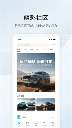 比亚迪车主使用app官方版是一款专为比亚迪汽车用户打造的智能服务软件,该应用提供了丰富的功能和服务。用户可以轻松获取车辆信息、查看最新活动和预约试驾等操作;通过它还可以远程操控比亚迪汽车,实现便捷管理自己的爱车状态
