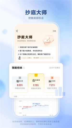 天天新客APP是一个集股票开户、账户管理、资金流向追踪以及基金销售于一体的综合类证券业务系统。目前拥有沪深A2个股,涵盖港美澳元年费行情、新三板指数/场内港口行情、科创板指数、期货、外汇行情、外汇指数、期权证监会认证机构、持牌券商、银联安全支付方式等,同时提供沪市两档证券市场行情及实时港股、期货、债券、贵金属等各类金融品种的一站式网上营业厅功能。广加财富作为全球领先的专业理财顾问团队,依托自身强大的互联网平台能力,为您提供专业的理财咨询与投顾服务,助您轻松赚取高额投资收益。广加财富APP将以大数据分析技术手段对您的投资策略进行分析,帮助您做出明智的投资决策,让您的财富之路更加顺畅。