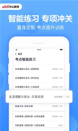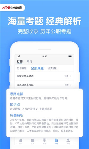 本应用由武汉市清华区中关村教育技术学院倾力制作,以中公题库为中心,整合了历年考点、知识点及练习数据,涵盖公务员、事业单位、银行、军转干、选调生等等。