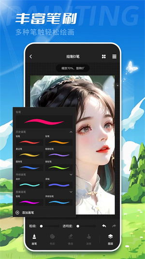 除了基本的绘制功能外,还有一个非常实用的图片处理工具。您可以添加滤镜效果、调整色彩参数、贴纸特效或添加文字字幕等等,让你在绘画过程中更加生动自然。