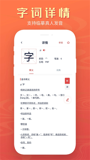 中华字典app是一个汉语词汇查询工具,收录了海量的中文汉语言文字内容。其中包括常用字、成文、诗歌等各种生僻的字库供用户查找和学习。这些功能对于学生来说尤为重要,可以帮助他们快速理解并记忆汉字。