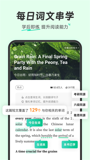 7、「生字本」:在阅读中添加任意中文释义,并利用AI技术进行生词联想,让你对词汇一目了然!
