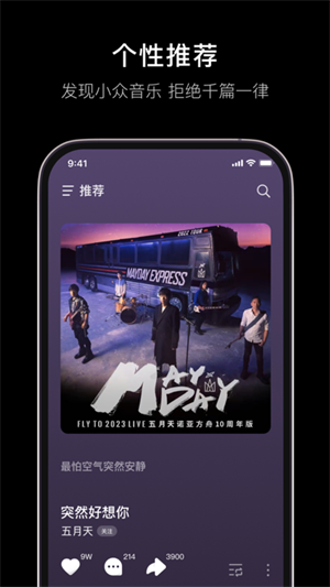 3、排行榜:为爱音乐的您而打造,实时更新潮流音乐榜单,紧跟流行步伐;