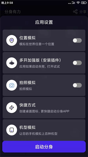 分身有力是款简单好用的手机多开软件,通过开启我们可以快速完成我们的应用程序和游戏的选择。方便的功能和超多功能选择让用户们轻松进行各种操作获取到自己想要使用的应用资源内容哦