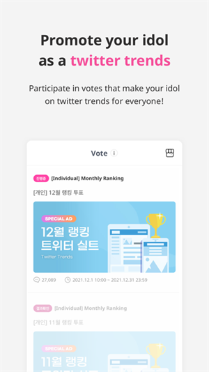 IShow48是一个专为韩流偶像打造的追踪软件,让用户能及时了解他们的动态,并跟进偶像的最新消息。用户可以通过该软件实时掌握最新的偶像资讯,确保不会错过任何重要事件或重要的时刻。此外,该软件还提供各种娱乐内容供用户观看,包括偶像演唱会、电影等,满足用户对偶像的多样需求。此外,IMBC冠军投票app也支持在线浏览明星们的精彩表演视频以及参与各种话题讨论,方便用户深入了解偶像是最爱的艺人的动向和生活状态。此外,该平台还提供了一些特别功能和服务,如订阅偶像团体(包括艺术家、艺术家)和其他粉丝社区,使用户能够第一时间获取到他们关注的偶像的所有动态更新。