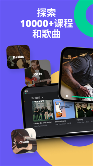 Yousician官方版是一款非常专业的乐器学习软件,由youcgae出品。它可以帮助你随时随地练习弹奏钢琴、吉他等乐器的音色和速度,并且还提供了丰富的曲谱资源供用户选择并免费使用。这款软件不仅提供各种乐器类型的教学视频及演奏示范讲解内容,还可以让你快速了解乐理知识以及掌握吉他的基本技巧与技巧。另外该平台也支持多种设备同步功能,让您在不同设备上无缝衔接学习进度和效果。这意味着您可以将手机或平板电脑连接到您的智能手表和扬声灯中来进行实时互动交流。同时,Yous��AI助手会为您带来更加个性化的反馈结果