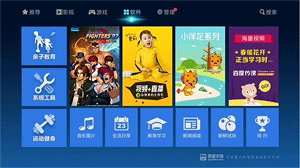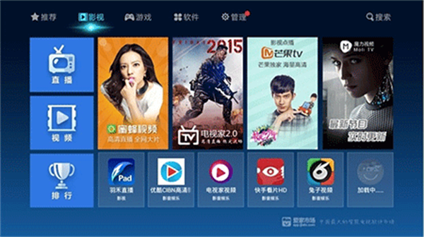 爱家市场电视端口版是专为智能电视打造的电视盒子应用,软件中提供了超多优质TV频道可以体验观看哦。用户还可以通过分类查找自己感兴趣的应用进行下载!操作简单易上手,对软件感兴趣的话不妨点击下载试一试吧!
