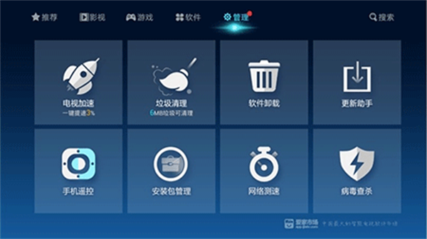 步骤1、进入首页后即可看到很多类型的服务入口,如电视卫士、应用商店、电视直播等多个板块可选其中一个选项打开它。2、然后就可以根据自身的需求将所需要下载安装的应用或者游戏都保存进度当中才能正常浏览该文件夹里的所有程序及相关资料。