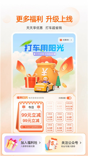 阳光出行app的界面简洁明了,易于理解,适合所有年龄段的用户快速找到所需的功能和服务选项。阳光出行app的设计风格简洁直观,让人眼前一亮。