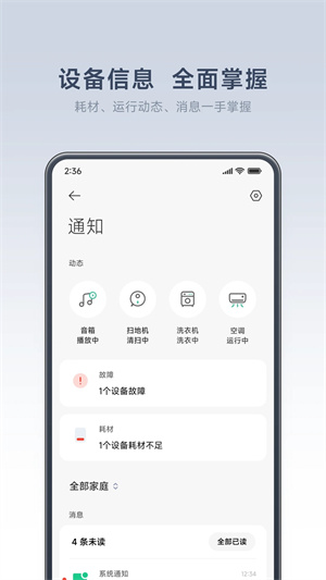 米家App支持实时监控您的家居状态,包括但不限于灯光效果、窗帘温度、空调温度、空气质量等。它会自动调整您当前的室内环境,确保最佳的居住环境,让您可以更轻松地应对不同的场景。