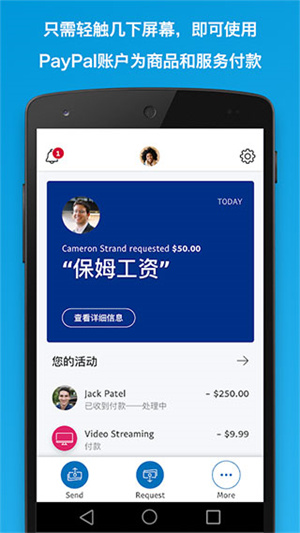 mobile官方发行的一款适用于外贸交易收款的手机支付软件。 支付宝app是由paypal官方推出的一款支付软件,在谷歌商店中也有很多用户分享自己的收款信息。用户可以通过支付宝来进行付款操作,并且还能随时查看交易状态、管理收银台等功能!需要的朋友可以到绿色资源网下载体验一下哦