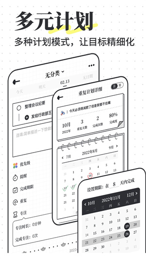 我要做计划中支持自己选择需要完成的任务进行记录并管理时间。软件内提供了多种不同的提醒方式来帮助用户更好的安排日程,并且能够在手机上面设置闹钟和日历功能方便大家随时查看自己的待办事项以及工作内容哦!喜欢的朋友可以下载使用!