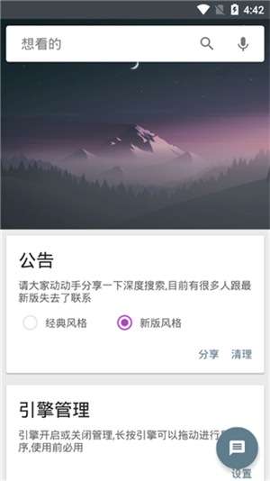 纯净的搜索框中没有任何广告打搅,致力于提供干净纯粹的搜索体验。