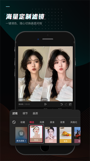 10、强大的滤波器+特效库:多种高级质感滤镜任你选择,呈现电影大片风格。