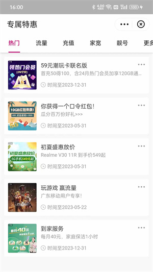 移动营业厅app是移动通信集团广东有限公司推出的手机号码查询服务软件,用户可以使用这款软件及时掌握广东移动最新资讯消息、话费余额等内容信息和业务办理进度。同时,还可以直接在线进行宽带套餐预约以及流量充值等等操作!对软件感兴趣的话不妨点击下载试一试吧!
