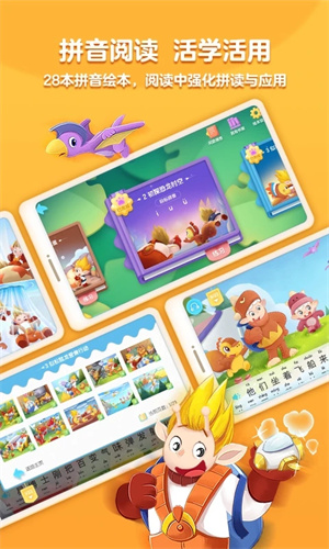 涵盖23个声调和24首古诗词。通过系统化的分级设置,帮助儿童从易到难地理解和记忆所有拼音。