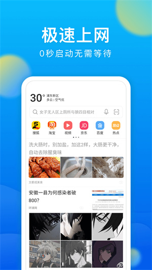 1、【极速搜索】强大的搜索引擎,一秒就能找到想要的内容。2、【轻量级设计】小巧稳定,省流量,运行流畅。