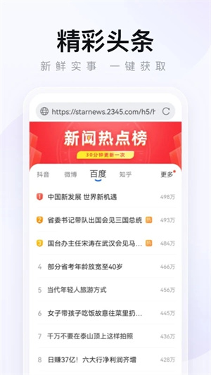 2345浏览器是一款非常实用的手机上网工具。在如今网上冲浪时,小编给大家带来的这款软件就是由中国移动官方推出的一个全新手机浏览器应用,用户通过这款2345浏览器不仅能够快速浏览各种网页内容还拥有海量视频、小说等资源供用户观看!同时软件界面简洁美观,没有任何广告弹窗干扰,给用户的上网体验带来了极大的便利!