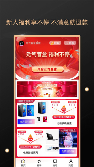 元气魔盒app是一个盲盒购物平台,在这里你能享受到多种盲盒玩法体验,各种类型的商品都有。用户们可以根据自己的喜好去选择购买,还能通过邀请好友来进行抽奖获得商品奖励。感兴趣的朋友快来下载试一试吧!
