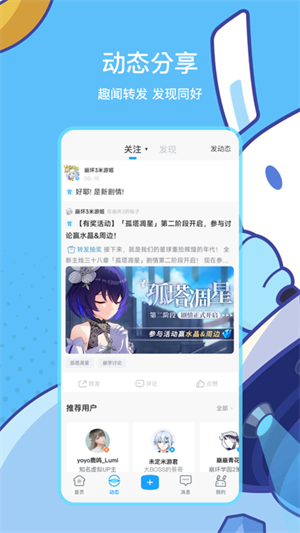 米站云游公司官方提供最优质的二次元社区平台,让玩家可以找到各种各样的游戏资讯信息;