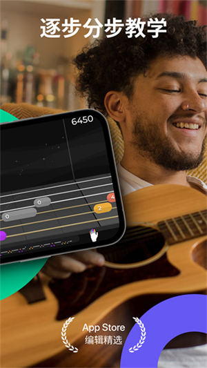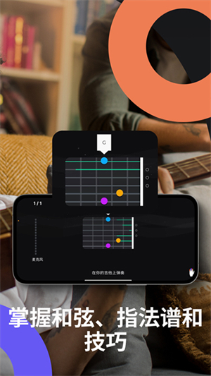 允许您迅速浏览和搜索您想听的吉她弦和节拍。