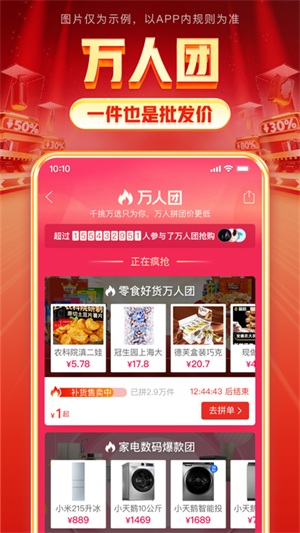 拼多多免费版是一款十分受用户欢迎的在线购物优惠券领取软件。在这款拼多多中你可以找到海量的商品,并且这里所有的商品质量都是有保障的哦,喜欢网购的用户赶紧来下载吧~