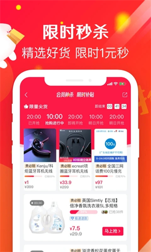 新人专享0元购、9块九包邮,限时抢购等惊喜多多!更有邀请好友得现金奖励。