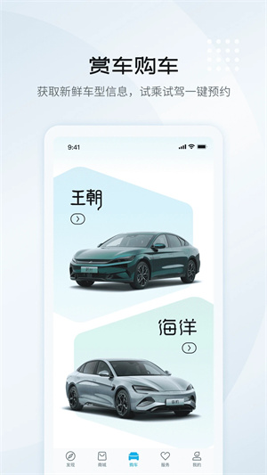 比亚迪汽车app是专为比亚迪车主打造的一款手机智能出行服务软件,用户通过该软件可以实时查看车辆状态、在线预约维保和维修保养。同时在软件中提供了车友互动社区让用户之间能够进行交流沟通;还能随时了解爱车的最新动态哦,感兴趣的用户快来下载吧!