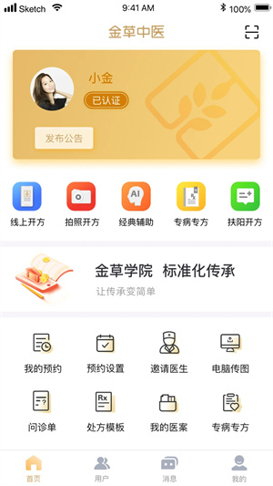 金草中医医生在线服务软件是一款专门为医护工作者而打造的线上医疗健康平台,该应用提供了专业的诊前咨询、病情查询等功能。用户可以通过该应用向专家发起问卷调查和回答问题,获得专业解答并与患者进行一对一沟通;还能够查看医生的专业信息和服务质量评价报告以及各种优质医学资源共享给用户们参考