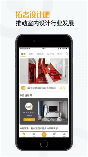 -设计灵感APP是面向大众的设计师社区,旨在打造一个集设计资讯展示、设计服务互动于一体的综合性设计师社区,为广大的设计工作者提供便捷高效的一站式在线体验方式。