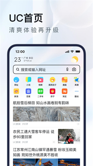 uc浏览器极速版最新版本采用的是全新的U3浏览器内核打造的全新功能,在这里有着全新的首页和搜索栏目为你提供更加丰富的服务项目;除此之外软件还可以对各种文件格式的支持快速解码操作哟!感兴趣的小伙伴快来本站下载吧!