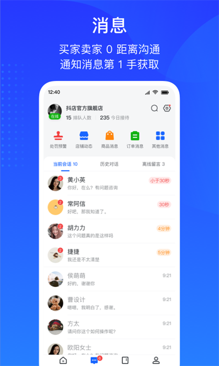 小号商家版app是专属于抖米小团商家的移动应用。通过抖音小店商家版可以查看商品、订单详情及退款等交易状态,并可实时查询自己的营业情况以及对店铺的所有评价;支持一键分享至微信、qq等平台上与好友交流互动。同时,该软件还能帮你轻松开店,快速推广到抖客群。