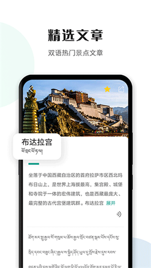 藏译通手机版是藏汉互娱为广大藏族的用户们提供的一款智能翻译软件,该软件能够将你所需要翻译的语言直接进行输入和转换成藏语文字。它不仅可以让你在藏文中轻松得到藏籍中文、阿拉伯语、韩文本等多种语言之间互相实时识别语音并支持多国语言相互切换;同时还有着丰富的藏文化内容供用户阅读学习!