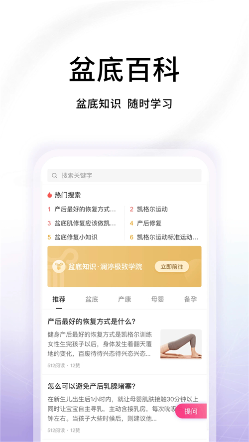 由深圳市凯康科技有限公司开发的一款专业的产后恢复健康管理APP,它可以记录产后的运动、饮食、营养等数据,并生成相应的健康报告给用户分析,并且还可以随时随地查看自己的训练进度,了解自己每天的运动情况。同时,用户也可以在这里上传自己的训练照片和其他用户交流心得,分享自己的训练经历,共同进步;另外,用户可以通过它学习到各种科学的盆友肌肉知识以及肌群锻炼方法,让你快速掌握盆形变化,让您的身心健康得到保障。另外app还提供了丰富的专业内容库与优质服务功能,满足了所有用户的使用需求。感兴趣的小伙伴赶紧来本站下载试试看!软件特色